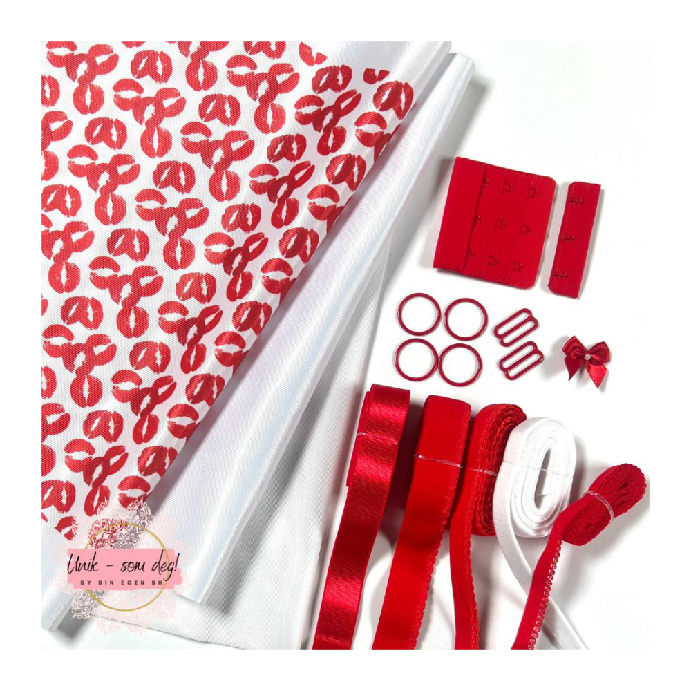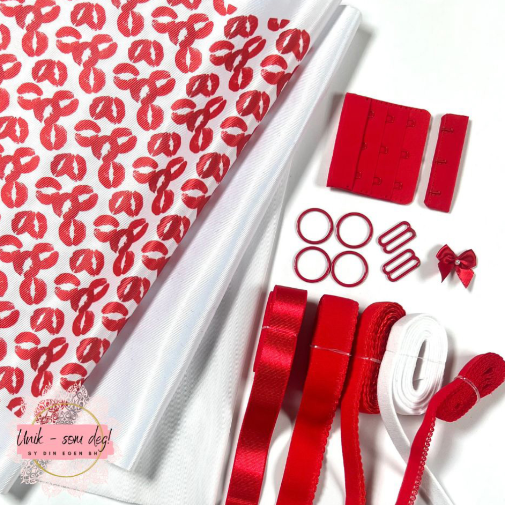 BH- sett med mønster. Sy din helt egen Valentine-BH, med kult røde munner-mønster*