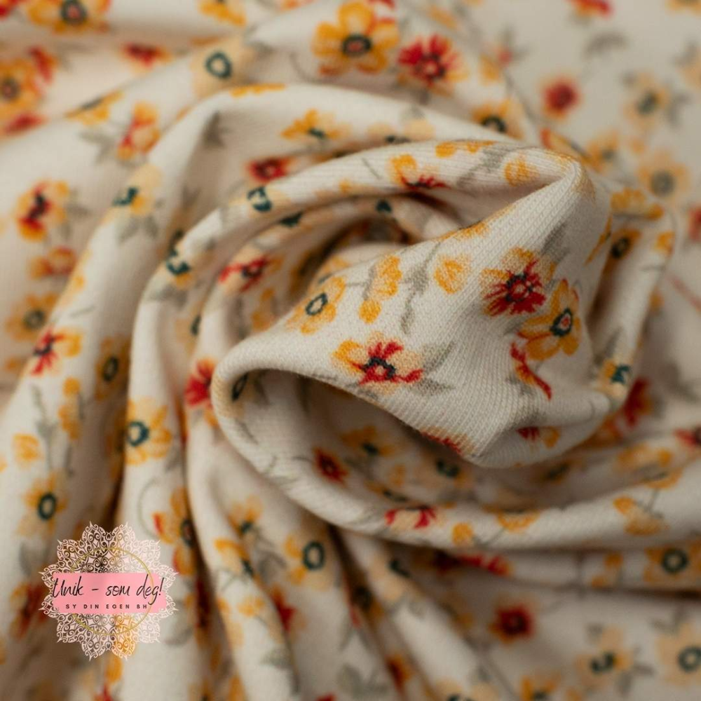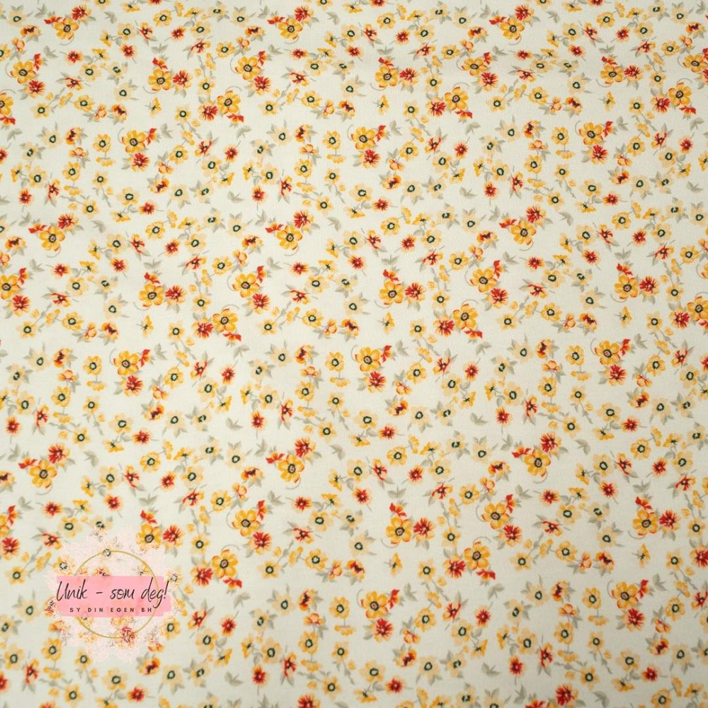 Farge: Flerfarget gule blomster på offwhite bakgrunn
