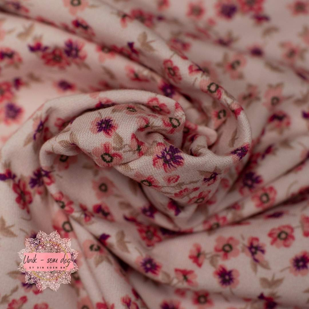 Myk og elastisk bomullsjersey med nydelig print – perfekt til truser, braletter og behagelige topper. Stoffet er pustende, stretchy og føles deilig rett mot huden. Også supert til barneklær, kjoler og myke hverdagsplagg.