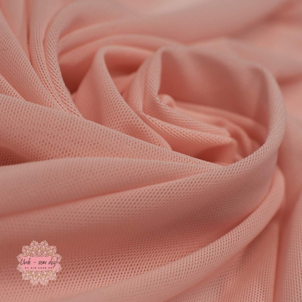 Denne ultramyke stretch-meshen har et nydelig fall og kjennes silkemyk mot huden. Perfekt for deg som syr eget undertøy eller vil tilføre plaggene dine en lett, elegant touch.