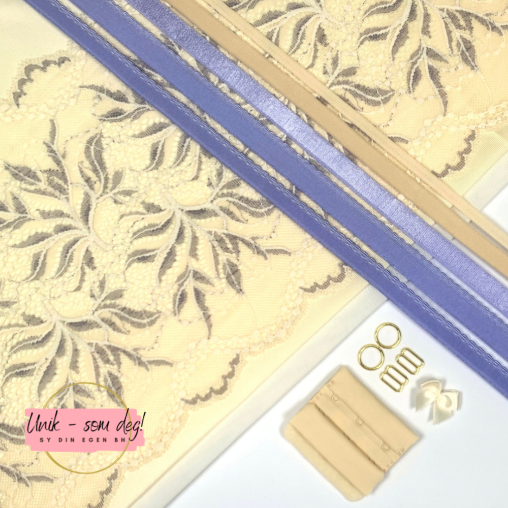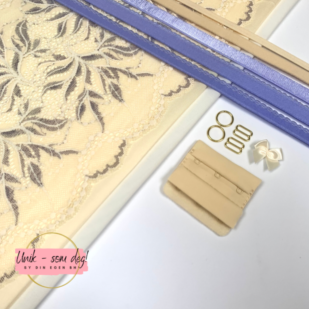 I dette BH-settet finner du alt av materialer du trenger for å sy en BH. Spiler og tråd er valgfritt og legges til i prisen.